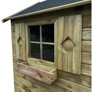 Ouvertures : Fenêtres avec plexiglas, volets décoratifs, porte pleine