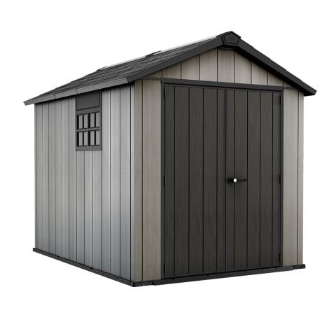 Ce produit vous est proposé par OOGARDEN Garons, il s'agit d'un abri de jardin en résine KETER, qui est un peu tordu à un endroit.