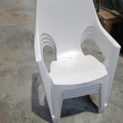 Ce produit vous est proposé par OOGARDEN Garons, il s'agit de 4 fauteuils blancs en résine qui sont un peu abîmés et poussiéreux.