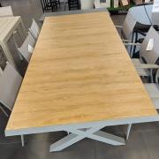Table avec structure en Aluminium Taupe et plateau en verre aspect Bois