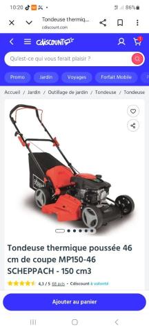 Vends tondeuse scheppach démarrage électrique ou lanceur coupé de 46 cm neuve jamais servie encore dans le carton.