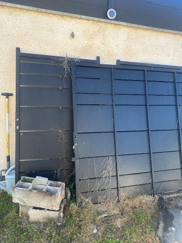 Acheter portillon Aloes acier noir mat 1m et 1m 82 d’hauteur et un portail de 4m et hauteur 1m82. Jamais posés ni utilisés suite à une préférence à l’aluminium .